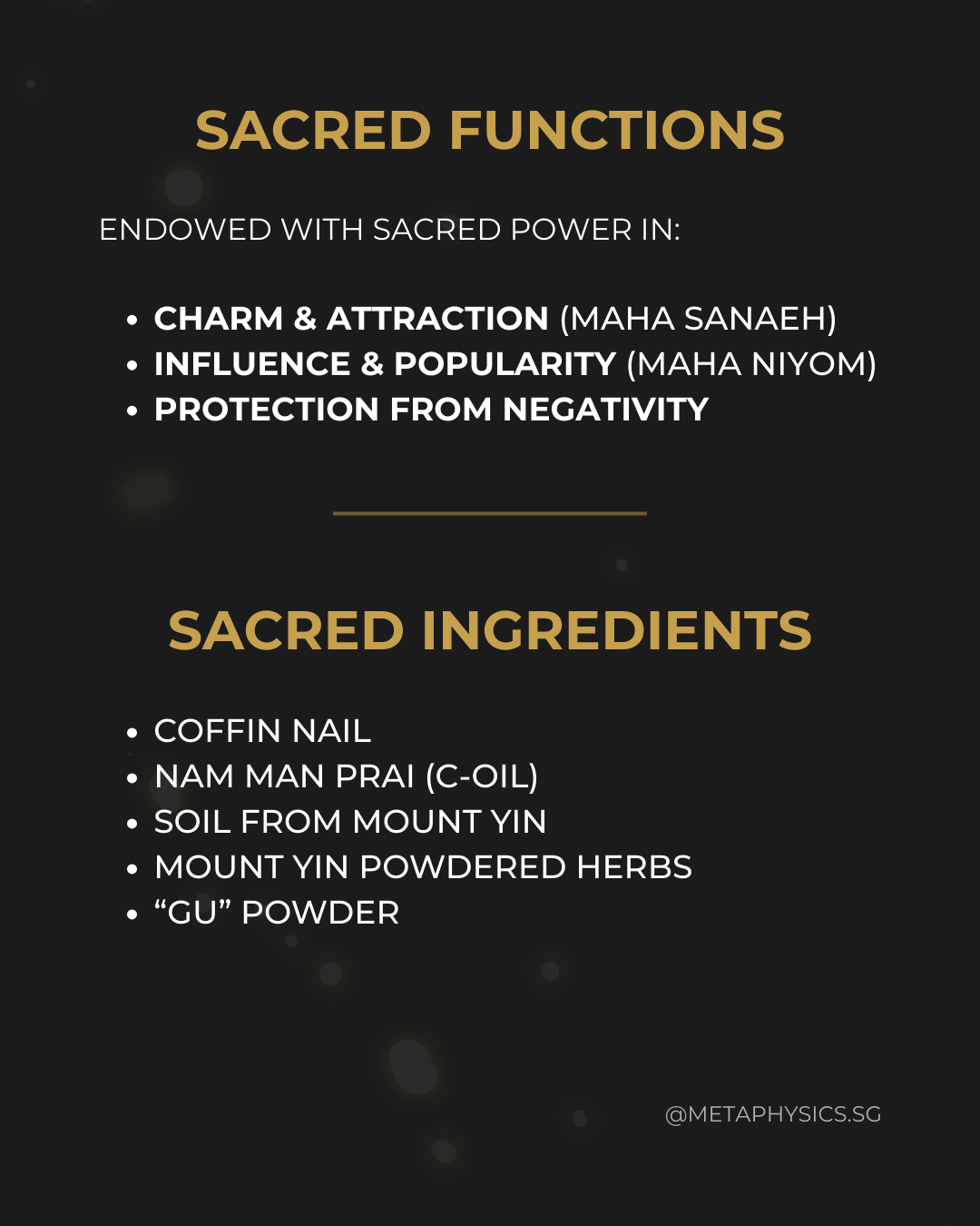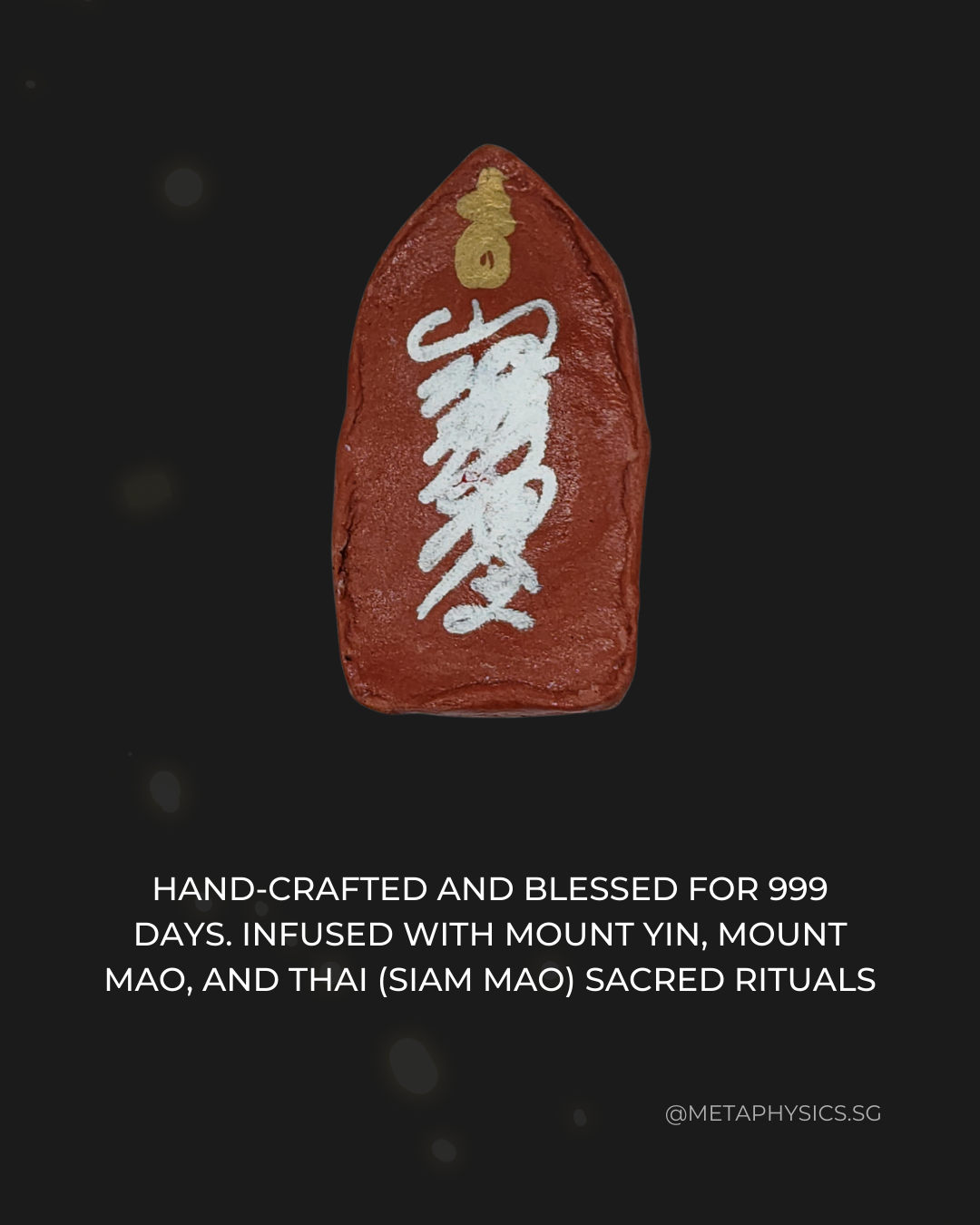 A sacred amulet blessed for 999 days by Ajahn Bhutavejja, infused with rare rituals from Mount Yin, Mount Mao, and Thai Mastery (Siam Mao).